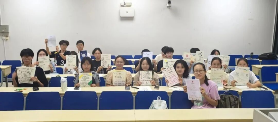分享会的第一站,在教室内,是一场名为“廉洁账本共创会”的集体创作。同学们围坐在一起,在负责人的引导下,拿起画笔、翻开纸页,以“廉洁”为底色,自由挥洒创意,以笔传情、以画喻廉。创作结束后,大家用活页环将数十幅风格各异的设计内页精心装订,一本凝聚集体智慧的“清廉合集”在大家的目光下徐徐展开,成为这个秋夜最珍贵的纪念。这本由同学们共创的账本,不仅是事务公开的生动载体,更是同窗之间协作与共鸣的美好见证。这场温馨的共创,如同一道开场序曲,徐徐拉开了整个分享会夜晚的帷幕。